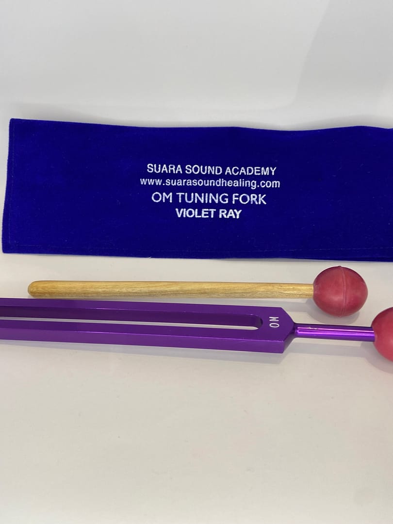 Om tuning fork in violet Ray colour.